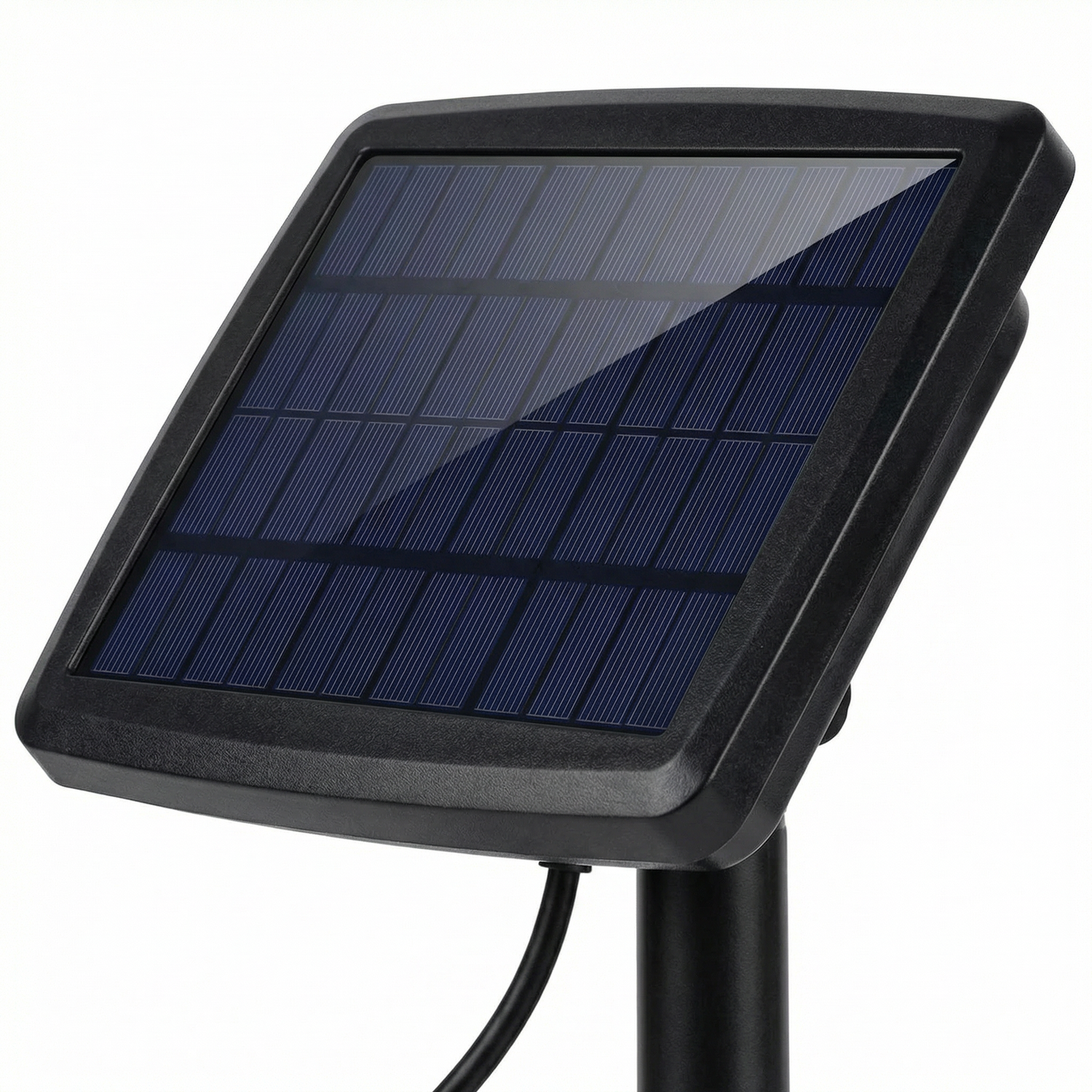 El panel solar capta la luz del sol y la transforma en energía, que se guarda automáticamente en una batería interna.